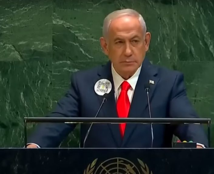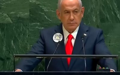 Bembers condemned Netanyahu by leaving the face of the United Nations in their hands and abusing his power and attacked Palestinian marijuana flute and attacked the UN members to protest the video and clap him with the chairs.